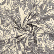 Bring elegance and versatility to your creations with this Heather Gray-Beige Floral Stripe Printed Stretch Jersey Knit Fabric. Made from a comfortable blend of 48% polyester, 37% cotton, 11% rayon, and 4% spandex, this fabric combines softness with excellent stretch.