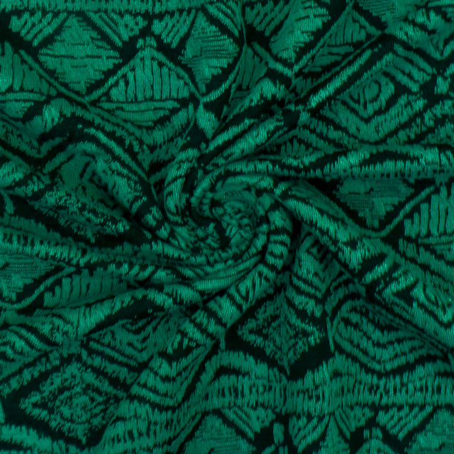1 Yard Fantasy Green Black Aztec Jacquard Stretch Polyester Double Knit Fabric 68 Inches Width