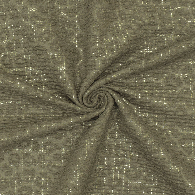 1 Yard Green & Silver Crinkle Leopard Metallic Plaid Stretch Double Knit Fabric, 61 Inches Wide