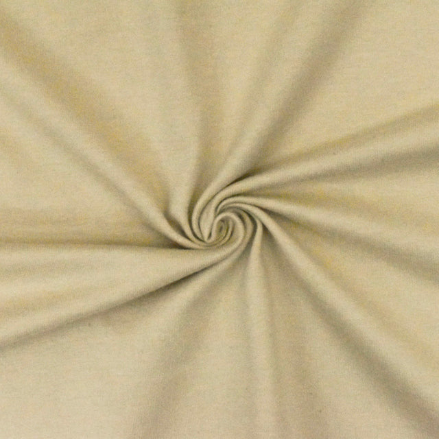 Discover comfort and versatility with this beige cotton jersey knit fabric featuring a soft hand and matte finish. Made from a breathable cotton-spandex blend, it offers horizontal, bias, and slight vertical stretch for excellent fit and movement. This light-to-medium weight opaque fabric drapes well and is ideal for activewear, basic tees, blouses, and dancewear. Machine washable and durable, it’s perfect for everyday wardrobe staples.