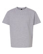 " Gildan Softstyle Youth Midweight Short Sleeve Crew-Neck T-Shirt Gildan Youth Softstyle Midweight T-Shirt offers superior comfort and durability for everyday wear. Made from 100% ring-spun cotton (90/10 cotton/polyester for Sport Grey), this 5.3 oz./yd² t-shirt is soft, lightweight, and perfect for active kids. Designed with 24 singles for a smooth finish and long-lasting quality, it’s ideal for school, sports, or casual outings.