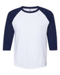 JERZEES® Three Quarter Sleeve Raglan Crewneck Baseball T-Shirt - White-j. navy / 3xl is backordered and will ship as soon as it is back in stock.