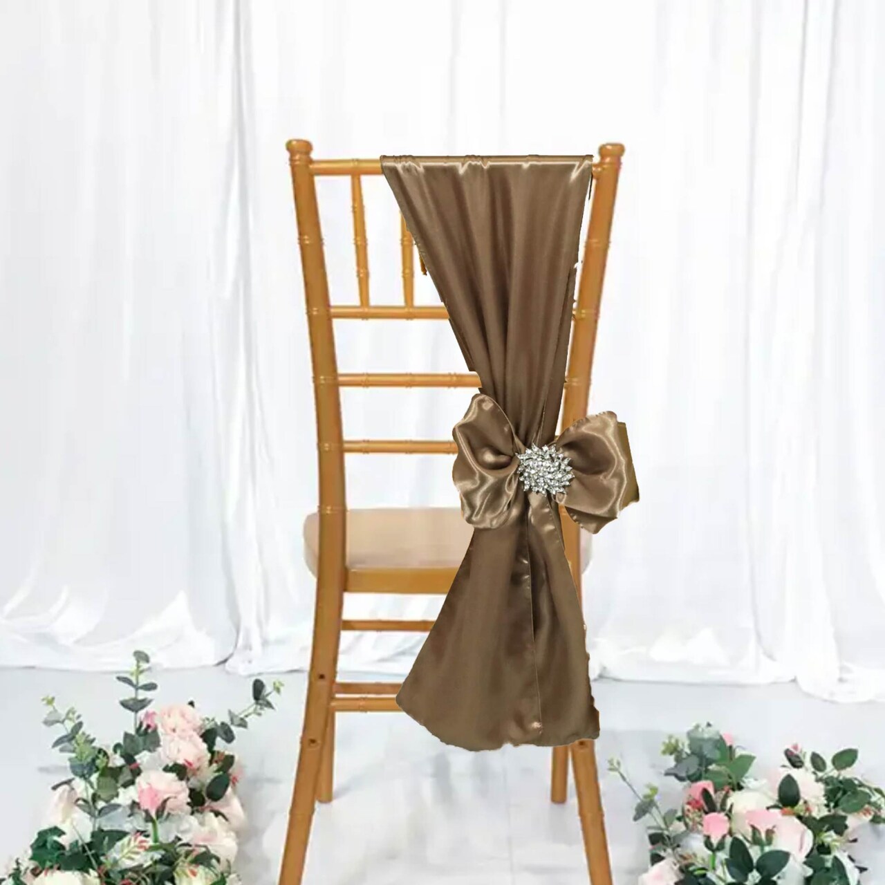 10 Pieces Latte Satin Fabric Chair Wraps, 8"x108" Stylish Decor Bands