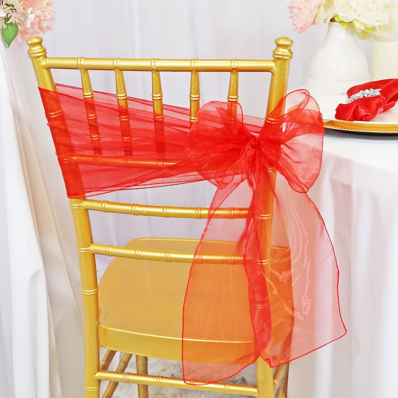 10 Pieces Red Organza Chair Sashes 8"x108" Sheer Decorative Bows for Weddings & Special Events