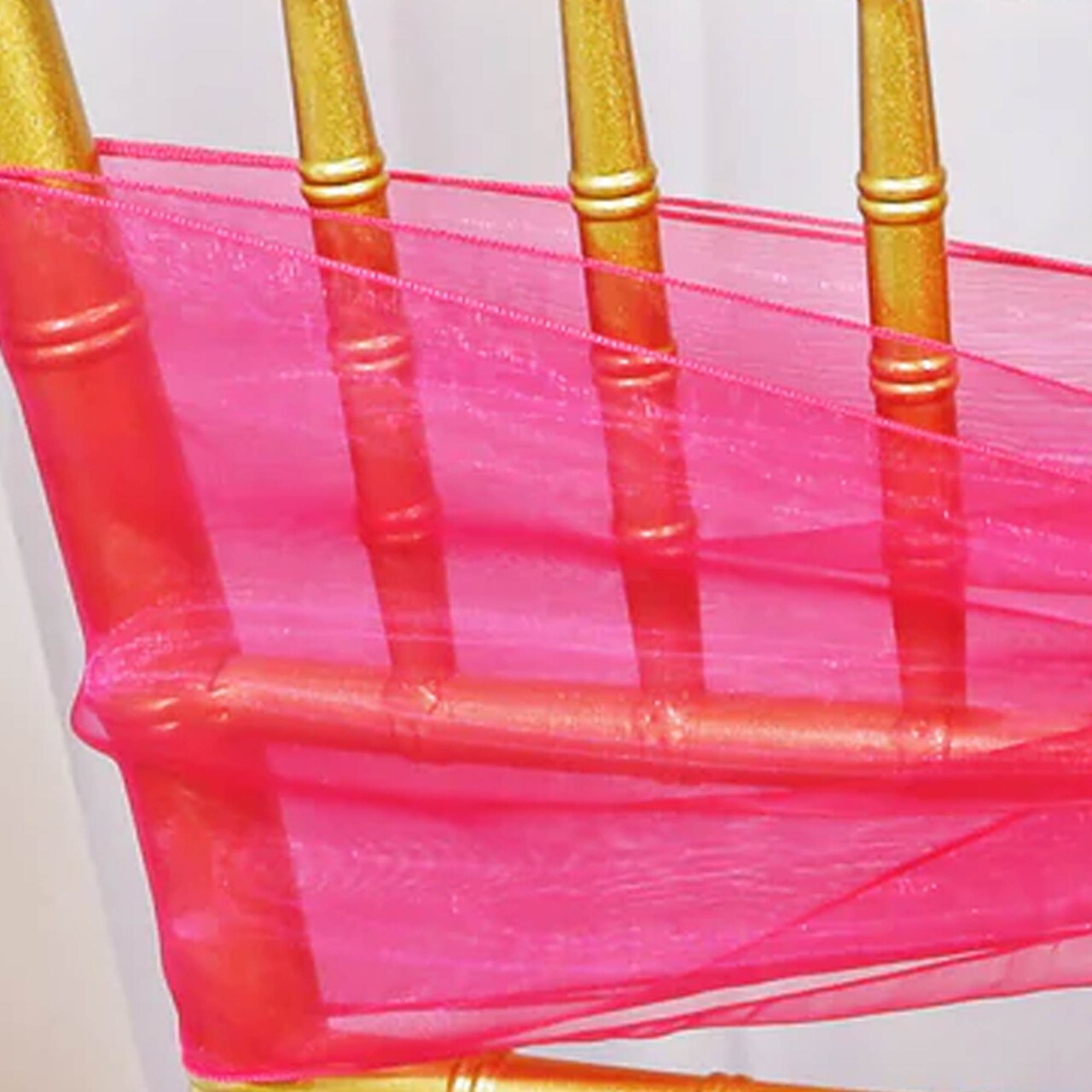 10 Pieces Fuchsia Organza Chair Sashes 8"x108" Sheer Chair Decor for Wedding & Events