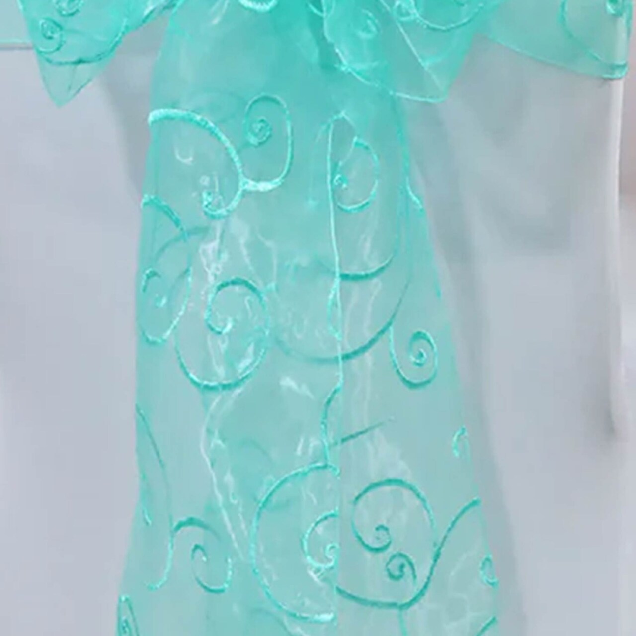 10 Pieces Tiff Blue Or Aqua Blue Embroidered Organza Chair Sashes 8"x108" Luxury Event & Wedding Decor