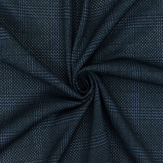 This plaid printed stretch polyester athletic mesh knit fabric features a lightweight semi-sheer texture perfect for activewear and dancewear The fabric offers moderate horizontal stretch and slight vertical stretch for comfortable fit and movement It has a good drape with a matte finish and textured hand making it ideal for blouses dresses and athletic apparel The fabric is machine washable ensuring easy care and long-lasting use