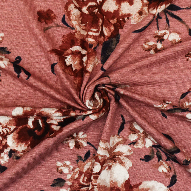 1 Yard Dusty Pink-Red-Multi Floral Printed Stretch Rayon Jersey Knit Fabric 64 Inches Wide
