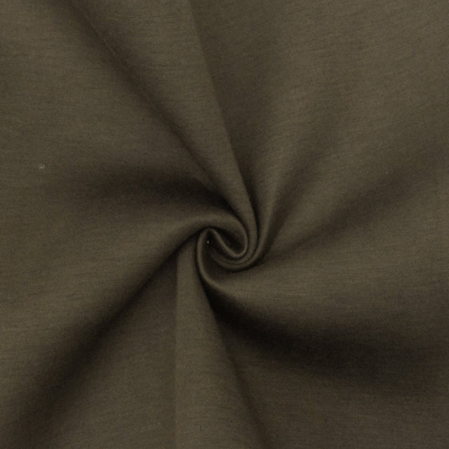 A medium-weight bonded double knit fabric featuring a reversible heather gray and brown face, moderate horizontal stretch, and a soft hand. Ideal for jackets, structured garments, and activewear needing form. Machine washable.