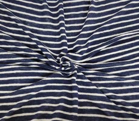 1 Yard Navy With White Stripe Yarn Dye Linen Jersey Fabric Lightweight Breathable Material