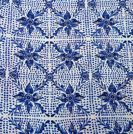 1 Yard Rayon Crinkle Fabric With Blue Floral Print On White Lightweight Material For Dresses