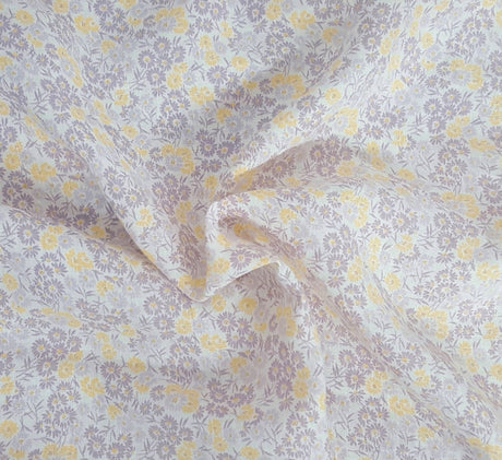 1 Yard Purple Yellow Sunflower Print Woven Linen Fabric Lightweight Durable