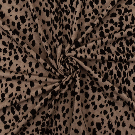 1 Yard Mocha Brown-Black Leopard Printed Stretch Polyester Jersey Knit Fabric 59 Inches Wide