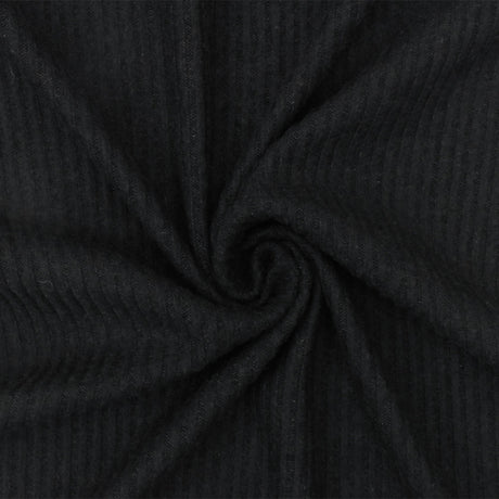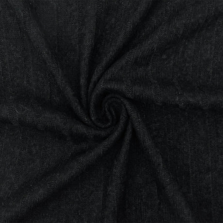 1 Yard Pitch Black Solid Stretch Brushed 2 by 2 Rib Knit Fabric 58 Inches Wide