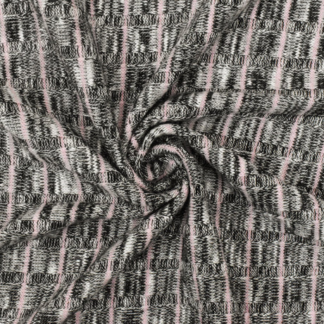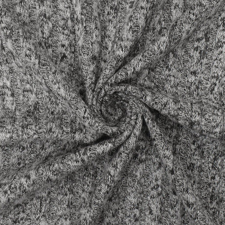 1 Yard Black & Light Icy Gray Rib Knit Textured Stretch Fabric for Dresses & Activewear, 57" Width