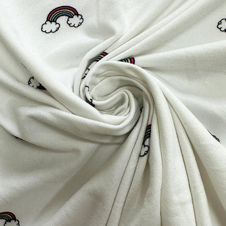 1 Yard White Rainbow Double Brushed Jersey Knit Fabric 58 Inches Wide