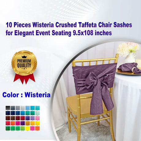 10 Pieces Wisteria Crushed Taffeta Chair Sashes for Elegant Event Seating 9.5x108 inches