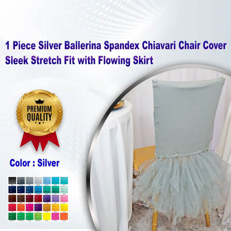 1 Piece Silver Ballerina Spandex Chiavari Chair Cover Sleek Stretch Fit with Flowing Skirt