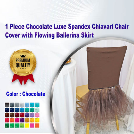 1 Piece Chocolate Luxe Spandex Chiavari Chair Cover with Flowing Ballerina Skirt