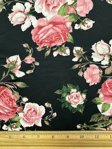 1 Yard Black Pink Multi Floral Scuba Knit Fabric For Apparel And Activewear Projects 58 Inches Width
