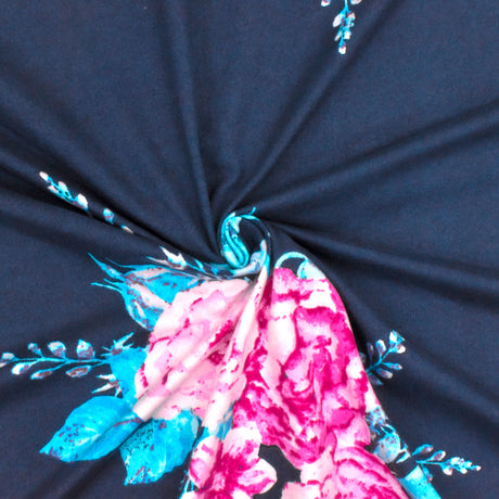 1 Yard Blue, Pink & Multi Floral Printed Double Brushed DTY Knit Fabric 60 Inches Wide