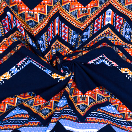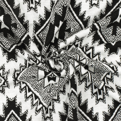 1 Yard Simple Black & White Aztec Jacquard Stretch Poly Double Knit Fabric 62 Inches Width