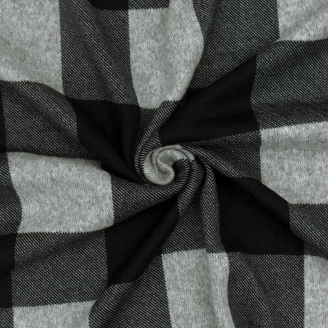 1 Yard Jet Black Gray Plaid Printed Stretch Polyester Brushed Jersey Knit Fabric 59 Inches Width