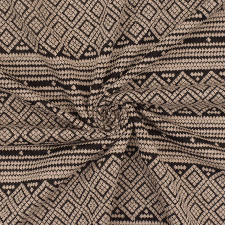 1 Yard Dusty Beige & Black Aztec Jacquard Stretch Polyester Double Knit Fabric 63 Inches Width