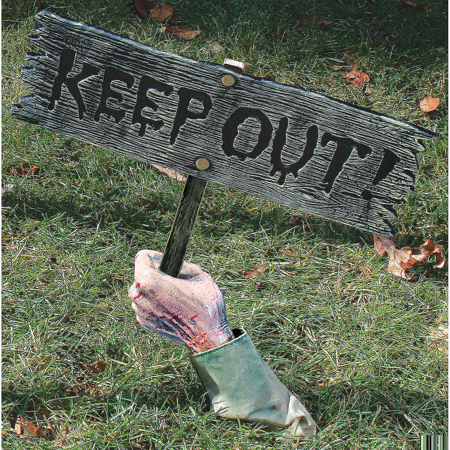Spooky Keep Out Warning Prop for Halloween Decorations Outdoor Graveyard Scenes