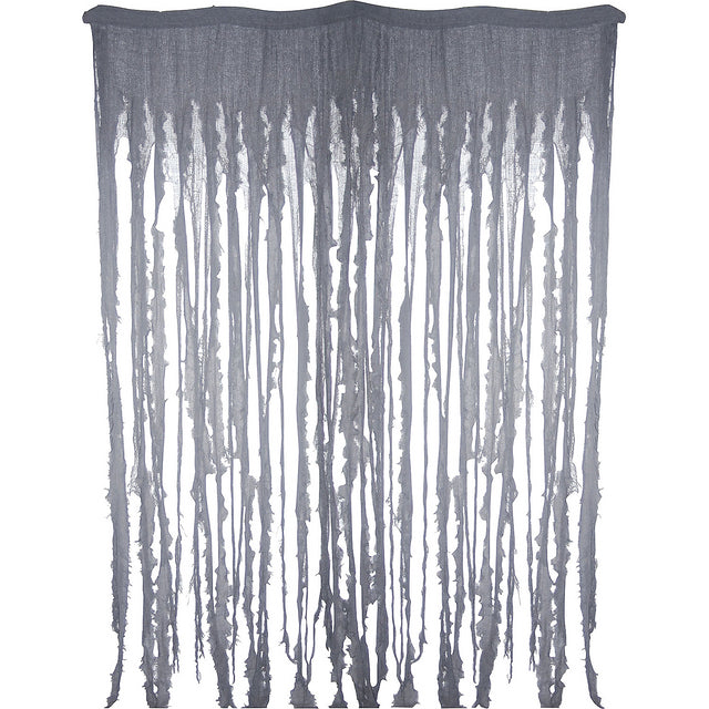 Make your home or scene appear haunted with tattered gauze-like curtains. Perfect for Halloween parties or adding a spooky touch to your haunted house, this curtain transforms any setting into a chilling atmosphere.