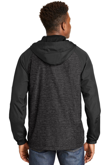 Sport-Tek® Heather Colorblock Raglan Hooded Wind Jacket.