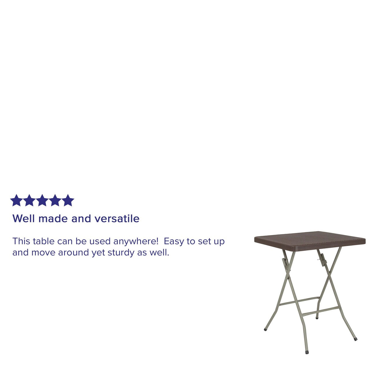 Add style and functionality to any space with this petite-sized rattan-style folding table. Perfect for casual dining, patio setups, or extra surface space, this table combines a decorative rattan weave top with easy fold-away legs for convenient storage and portability.