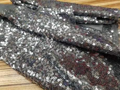 1 Yard Charcoal Gray Glitz Sequins Fabric Spangle Mesh 55 Inch Width