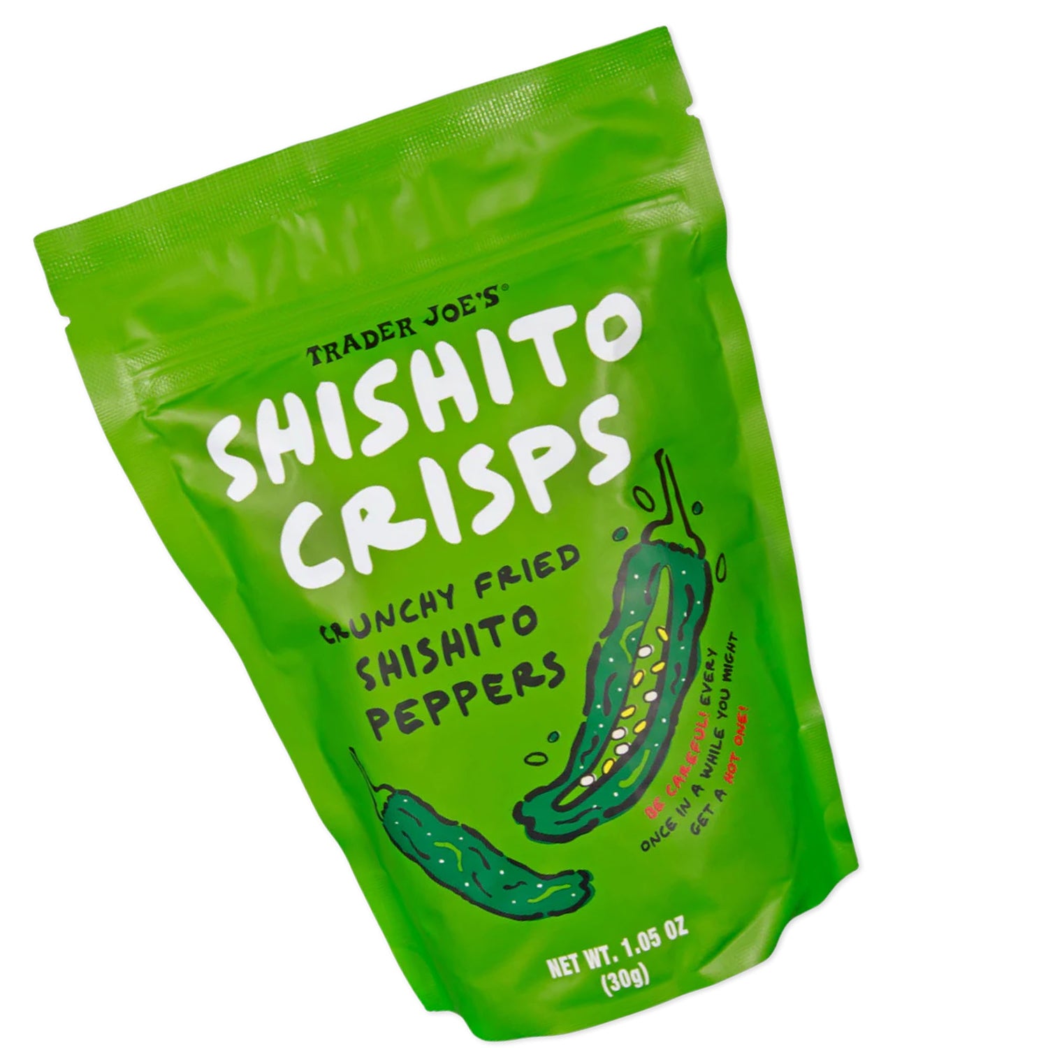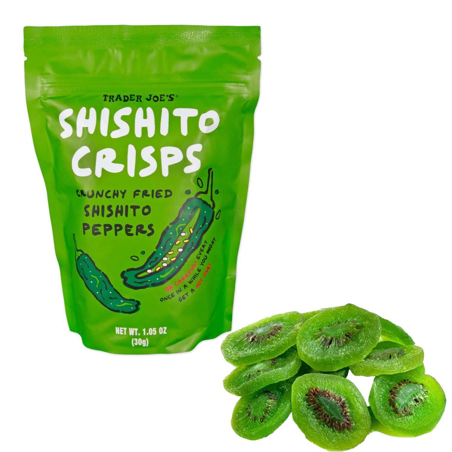 Experience a fun, flavorful crunch with Shishito Crisps! These light and crispy snacks are made from real shishito peppers, vacuum-fried to perfection using just rice bran oil and a sprinkle of salt. Each bite offers a savory, slightly sweet flavor with a surprise pop of heat in every handful — you never know which crisp will bring a touch of spice!