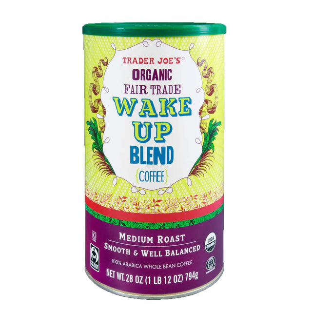 Start your day with the bold and energizing flavors of Trader Joe's Organic Fair Trade Wake Up Blend Coffee. This medium roast coffee is made from high-quality organic beans, offering a smooth, well-balanced taste with a satisfying richness. Perfect for those who prefer a hearty coffee experience, this 28 oz bag is ideal for brewing your favorite cup to kickstart your morning routine. Savor the taste of Fair Trade certified beans with every sip!