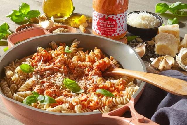 Can’t choose between marinara and alfredo? Trader Joe’s Rosatella Pasta Sauce gives you both! This creamy, tomato-based “pink sauce” is crafted in Italy with rich dairy from the Piedmont region, blended with tomato paste, onion & garlic purées, basil, oregano, and Grana Padano PDO cheese for a truly decadent, flavorful experience.