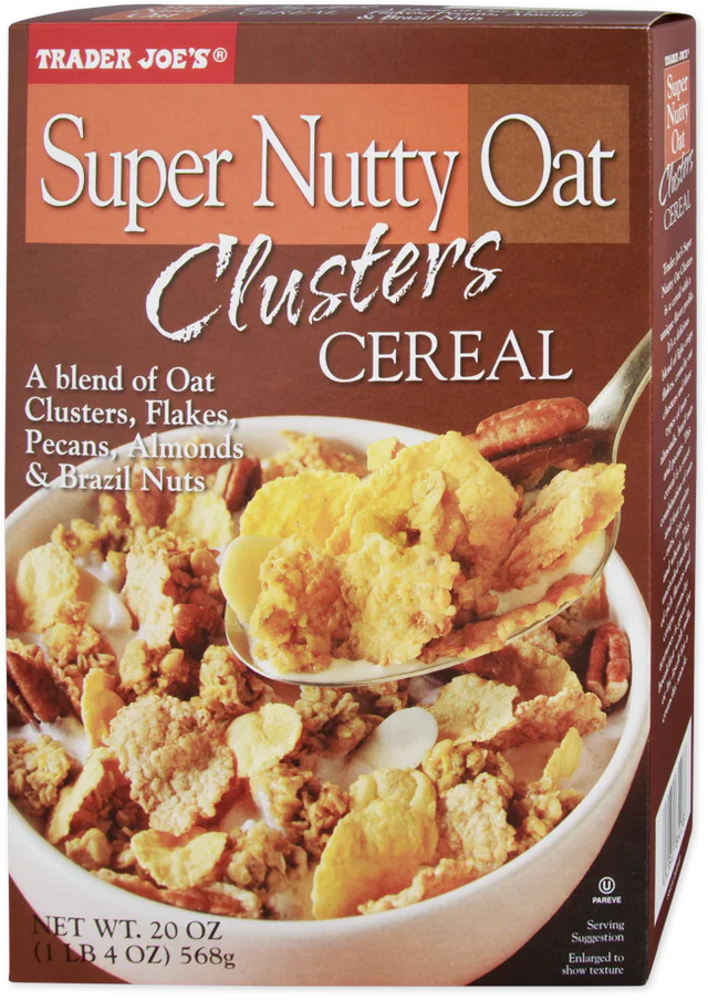 Trader Joe’s Super Nutty Oat Clusters Cereal is a crunchy, satisfying blend of crispy flakes, oat clusters, and three kinds of nuts—almonds, Brazil nuts, and pecans. Combined with four wholesome grains and a hint of toffee sweetness, it’s the perfect way to make breakfast (or snack time) extra special.