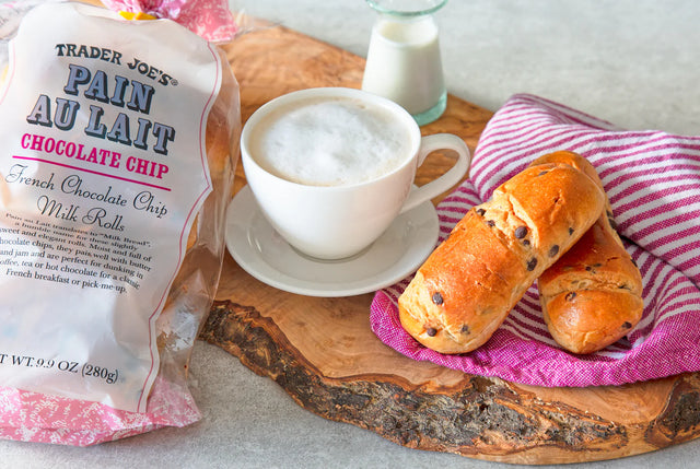 Indulge in Trader Joe's Chocolate Chip Pain Au Lait, a delightful twist on the classic Pain Au Lait, now filled with rich, dark chocolate chips.