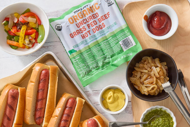 Trader Joe’s Organic Uncured Grass Fed Beef Hot Dogs offer a delicious, high-quality twist on a classic favorite. Made with USDA certified organic beef from grass-fed cows, these hot dogs deliver a rich, savory flavor with every bite. Seasoned simply and naturally with organic ingredients like garlic puree, minced onion, paprika, and red pepper flakes, these hot dogs are free from fillers and preservatives, including nitrates and nitrites.