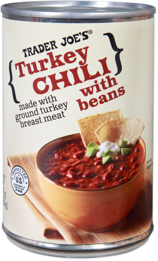 Trader Joe’s Turkey Chili with Beans features a hearty blend of ground turkey, crushed tomatoes, red beans, and spicy seasonings like jalapeños and cumin. Ready in minutes, it’s perfect on its own or topped with sour cream, onions, or hot sauce. Great for a quick lunch or as a topping for hot dogs, burgers, or sausages.