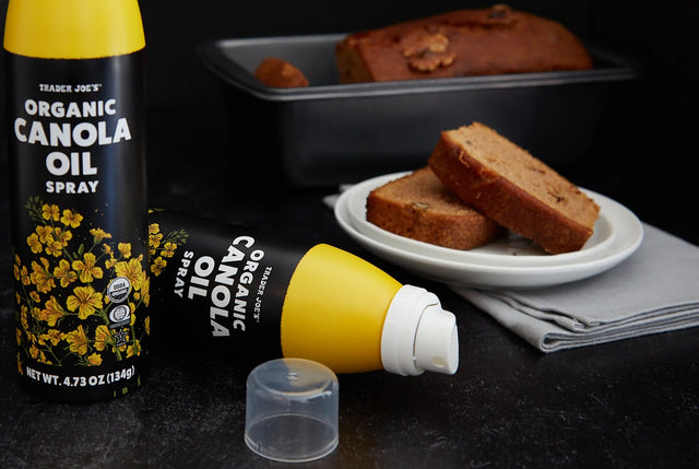 Trader Joe’s Organic Canola Oil Spray offers a quick, easy, and even way to apply oil to cooking surfaces. With a non-aerosol, air pressure-based Bag-On-Valve system, it delivers a fine, consistent mist without any propellants.