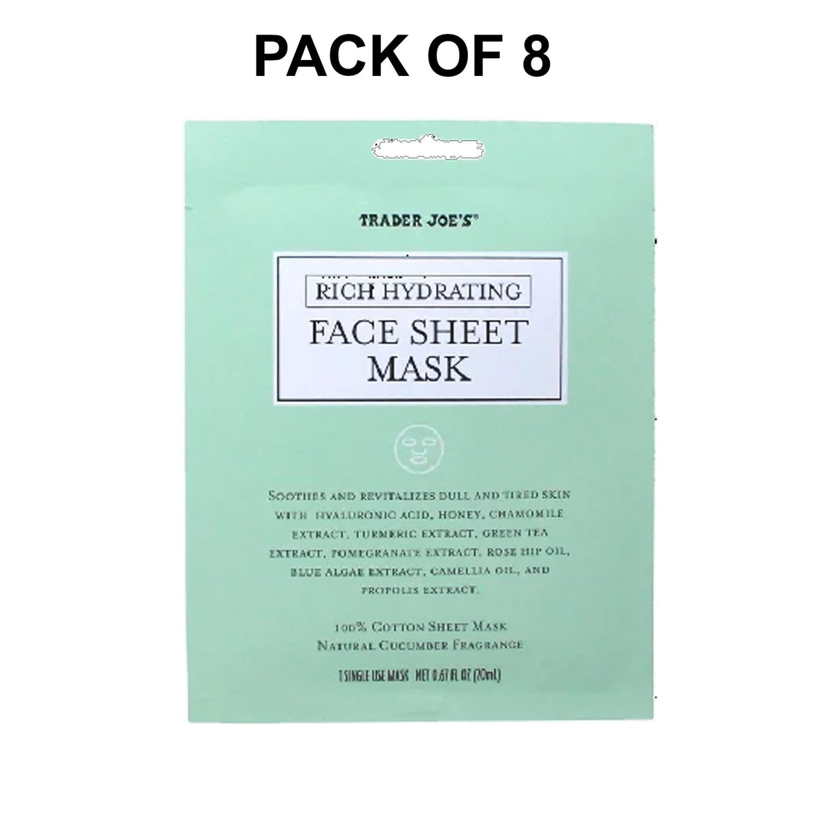 Trader Joe’s Rich Hydrating Face Sheet Mask Natural Cucumber Fragrance | 0.67 Fl Oz - 4 pack is backordered and will ship as soon as it is back in stock.