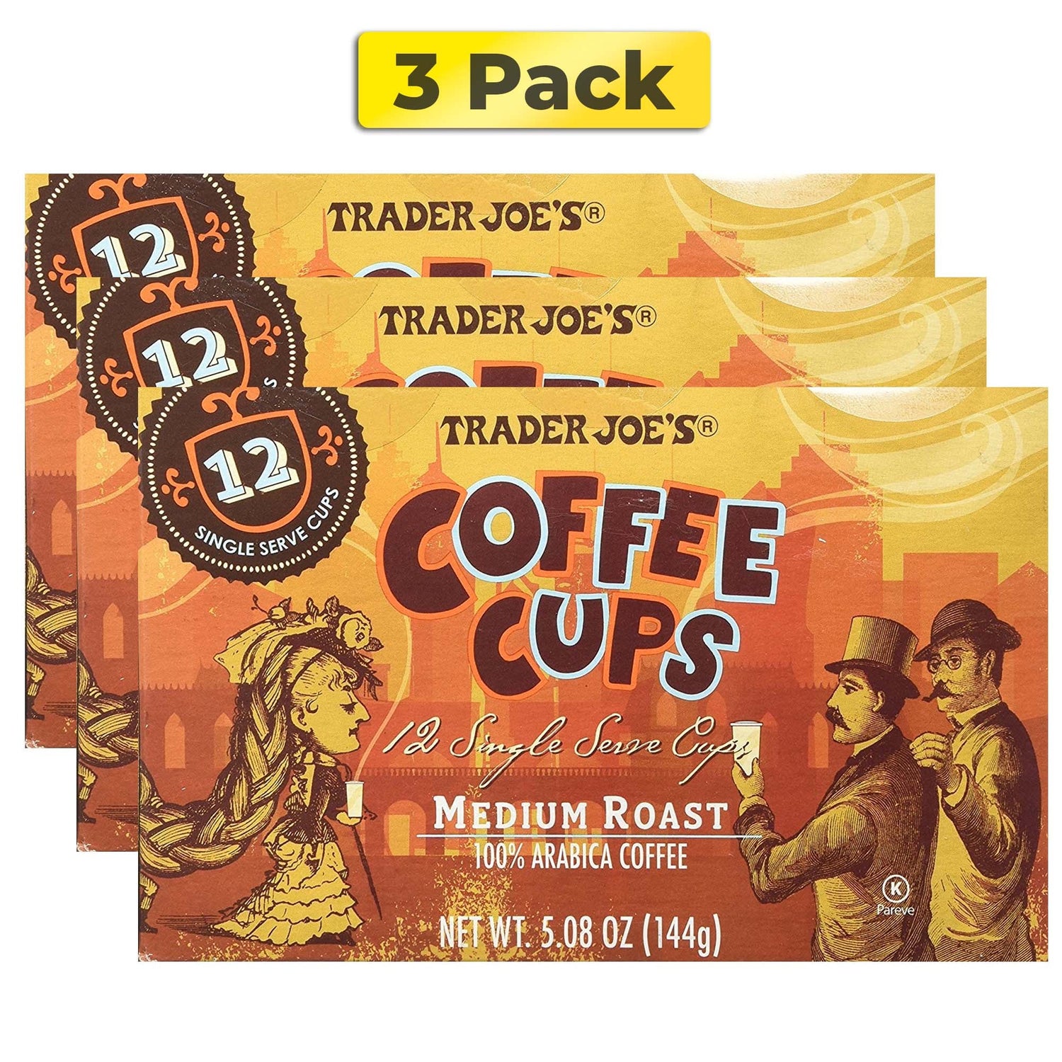 Enjoy the rich, smooth flavor of Trader Joe's Medium Roast Arabica Coffee in convenient single-serve cups. Perfect for a quick and delicious cup of coffee anytime!