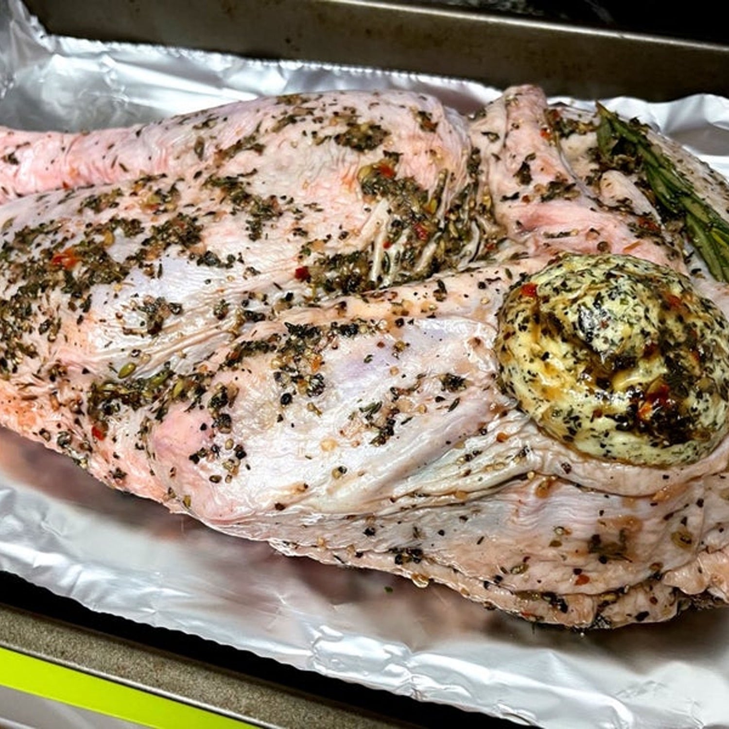 - Herb butter made with garlic, lemon juice, basil, and parsley for moisture.