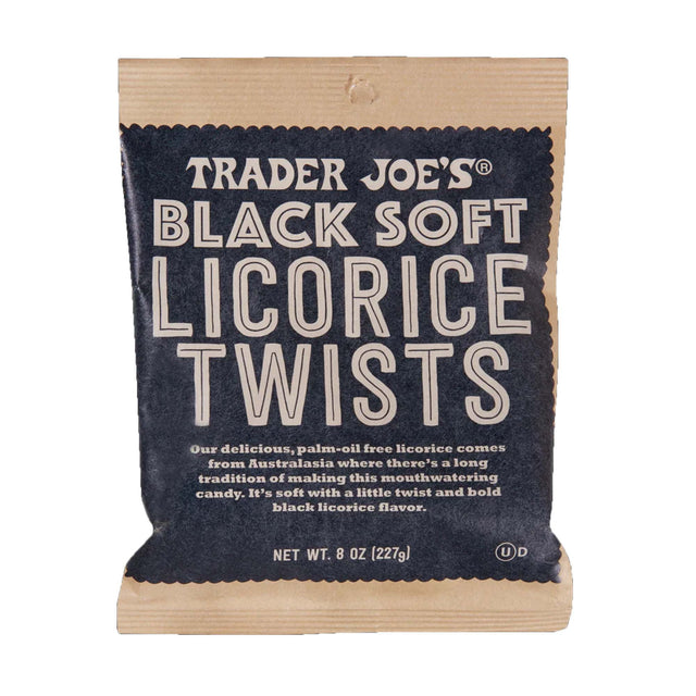 Description: Experience the perfect balance of sweet and herbal flavors with Trader Joe's Soft Black Licorice Twists. Made with real licorice root and crafted to stay soft and chewy, these twists are a licorice lover's dream.