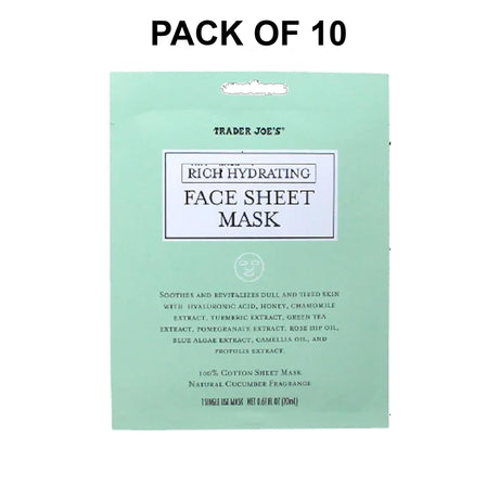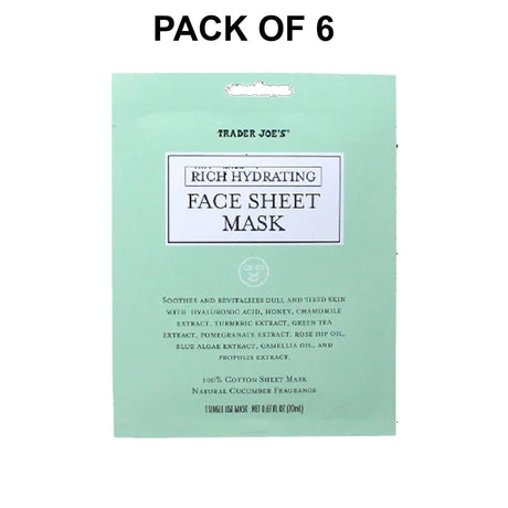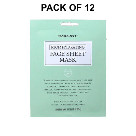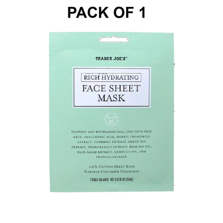Trader Joe’s Rich Hydrating Face Sheet Mask Natural Cucumber Fragrance | 0.67 Fl Oz