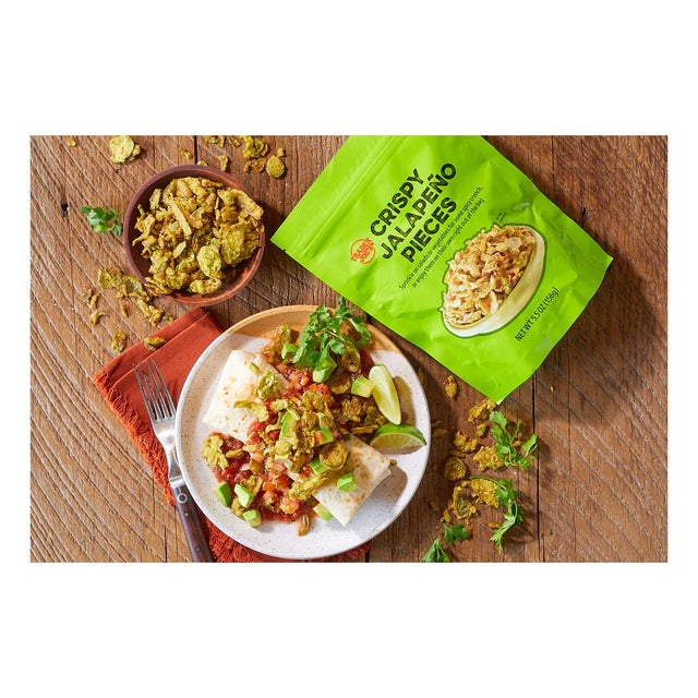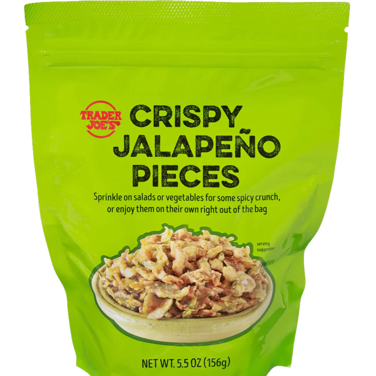 Trader Joe’s Crispy Jalapeño Pieces are crunchy, savory slices of jalapeño peppers, lightly battered and fried to deliver a bold kick of heat and texture. These versatile toppings add a spicy crunch to salads, burgers, tacos, and more. Whether sprinkled over mac & cheese or enjoyed straight from the container, they provide a flavorful twist to your favorite dishes.