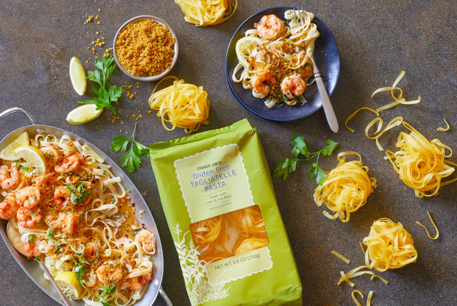 Trader Joe's Gluten-Free Tagliatelle Pasta offers a delicious alternative for those who need or prefer gluten-free options without sacrificing the texture and taste of traditional pasta. Made by our Italian supplier using a combination of corn and rice flours, this pasta is crafted to be nearly indistinguishable from regular pasta. The noodles are cut into long, ribbon-like strands, wider and slightly thinner than fettuccine, making them ideal for holding up against hearty sauces.