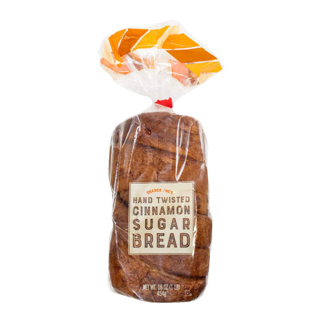 Trader Joe’s Hand Twisted Cinnamon Sugar Bread is a perfectly balanced, fluffy yet dense loaf, generously rolled in Korintje cinnamon and sugar for just the right amount of sweetness. Crafted from three pieces of dough twisted together by hand, this aromatic, unsliced loaf is ideal for toasting, French toast, or enjoying straight from the bag.