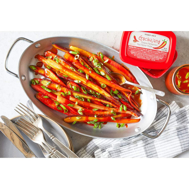 Trader Joe’s Gochujang Paste is a rich, savory-sweet Korean chili paste made using traditional fermentation techniques. Its thick texture and deep umami flavor add the perfect balance of heat and sweetness to any dish.
